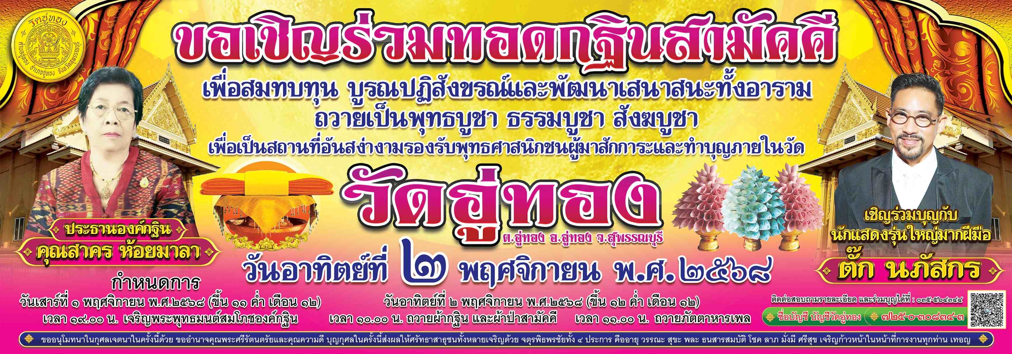 ขอเชิญร่วมทอดกฐินสามัคคี เพื่อสมทบทุน บูรณปฏิสังขร์และพัฒนาเสนาสนะทั้งอาราม ถวามเป็นพุทธบูชา ธรรมบูช
