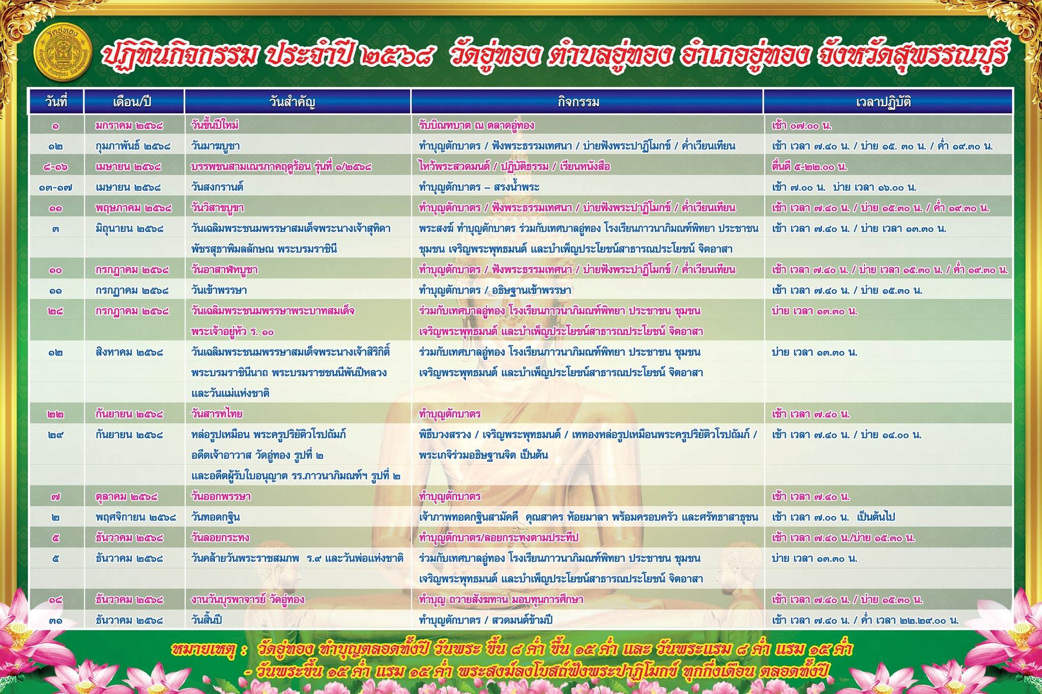 กิจกรรมของทางวัด